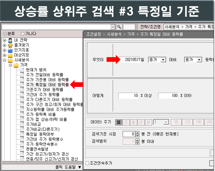 3. 특정일 대비 주가 상승률 설정