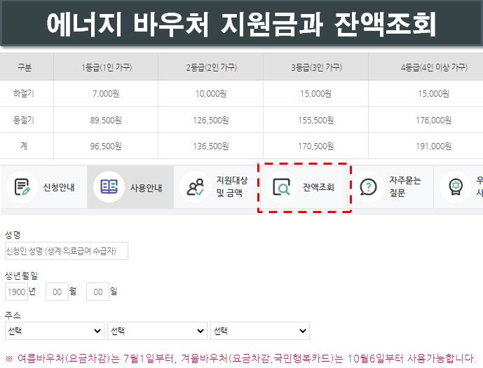 잔액조회는 에너지바우처 홈페이지 첫화면의 잔액조회를 클릭 후 기본 내용만 넣으면 쉽게 확인하실 수 있으니 참고하세요.