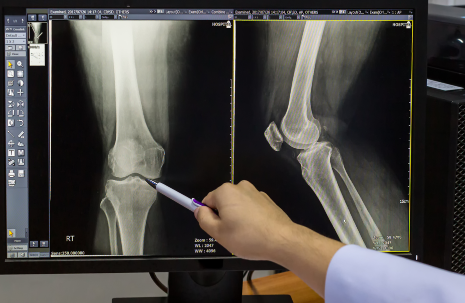 X-RAY 검사: 관절 간격과 뼈 변형 정도를 확인합니다. 연골이 닳았는지, 골극이 생겼는지도 확인할 수 있어요.