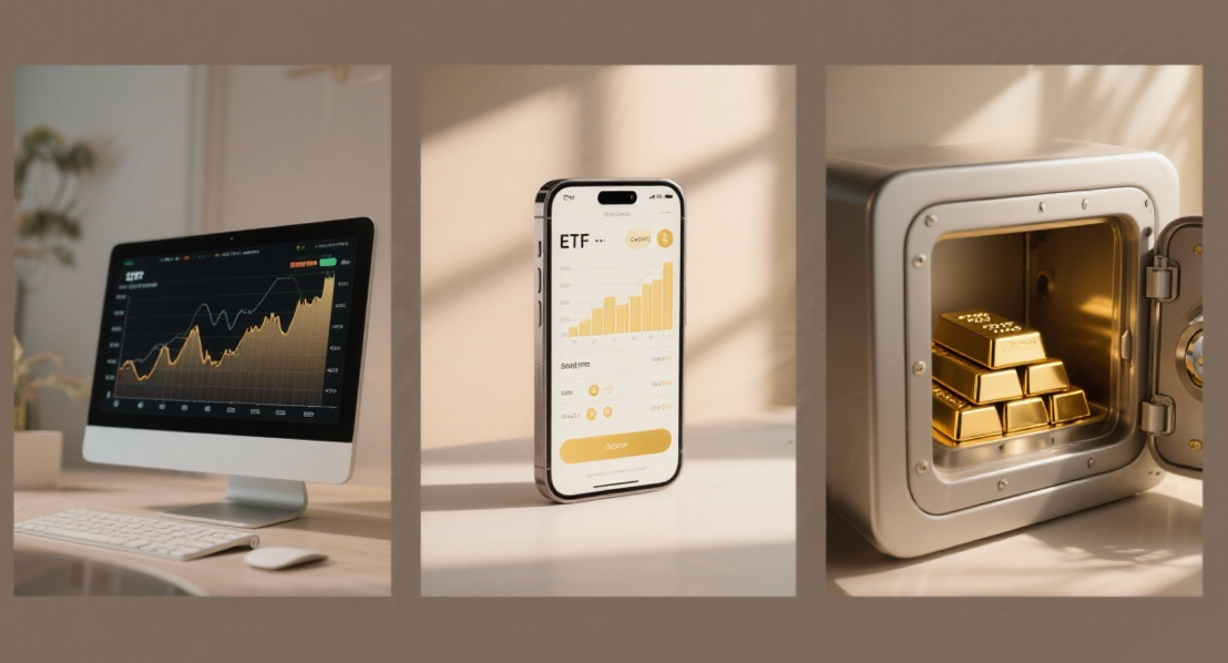또 다른 방법은 금 etf(상장지수펀드)입니다. 증권 계좌를 통해 주식처럼 매매할 수 있으며, 유동성이 높고 거래가 간편합니다. 다만 소액의 운용보수와 배당소득세 15.4%가 부과됩니다.