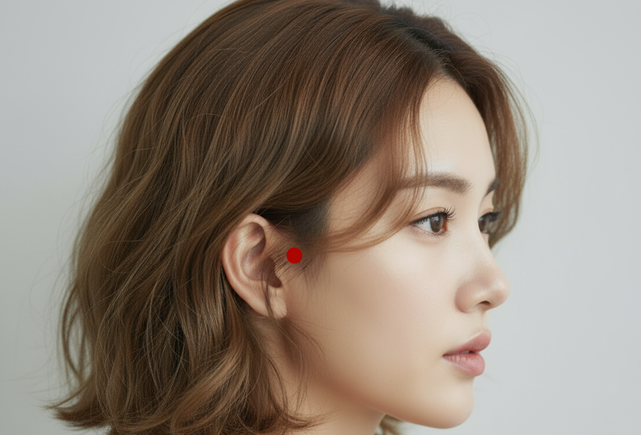 청궁혈은 이문혈 바로 아래, 귓불과 턱 사이의 오목한 부분입니다. 이름처럼 ‘소리를 듣는 궁전’이라는 뜻을 가진 자리로, 귀 질환에 널리 쓰이는 대표적인 귀침혈자리입니다.